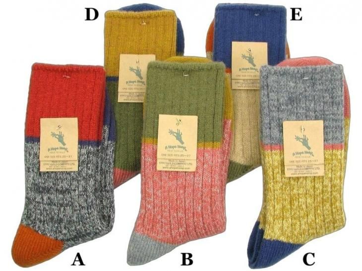 アホープヘンプから冬仕様ウールアクリルヘンプコットンのカラー切り替えSOCKSです。抗菌作用もあり、夏涼しく、冬暖か高性能天然繊維です。メンズ25cmからレディースは23cmからの対応です。